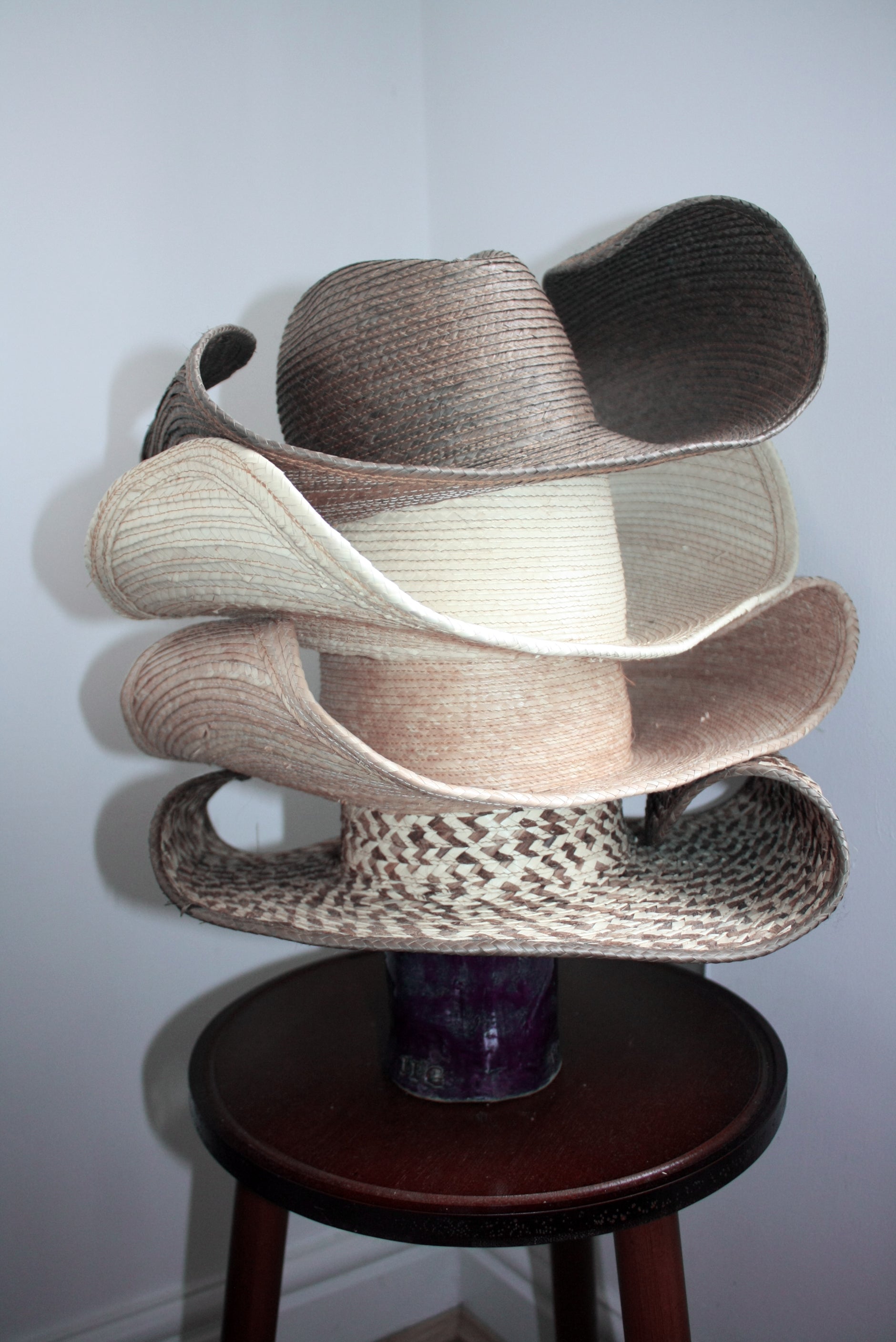 These sombreros showcase the artistry of traditional palm leaf weaving techniques, passed down through generations mixed with Issa Eakin's raw shapes. The Sombra Lamps introduce ambient lighting to your home for functionality and sculptural display all while showcasing artisanal craftsmanship.